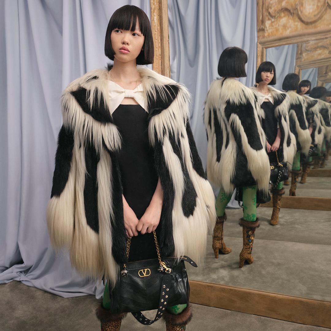 • Kleine Valentino Garavani Panthea Schultertasche aus Nappaleder mit Chevron-Muster