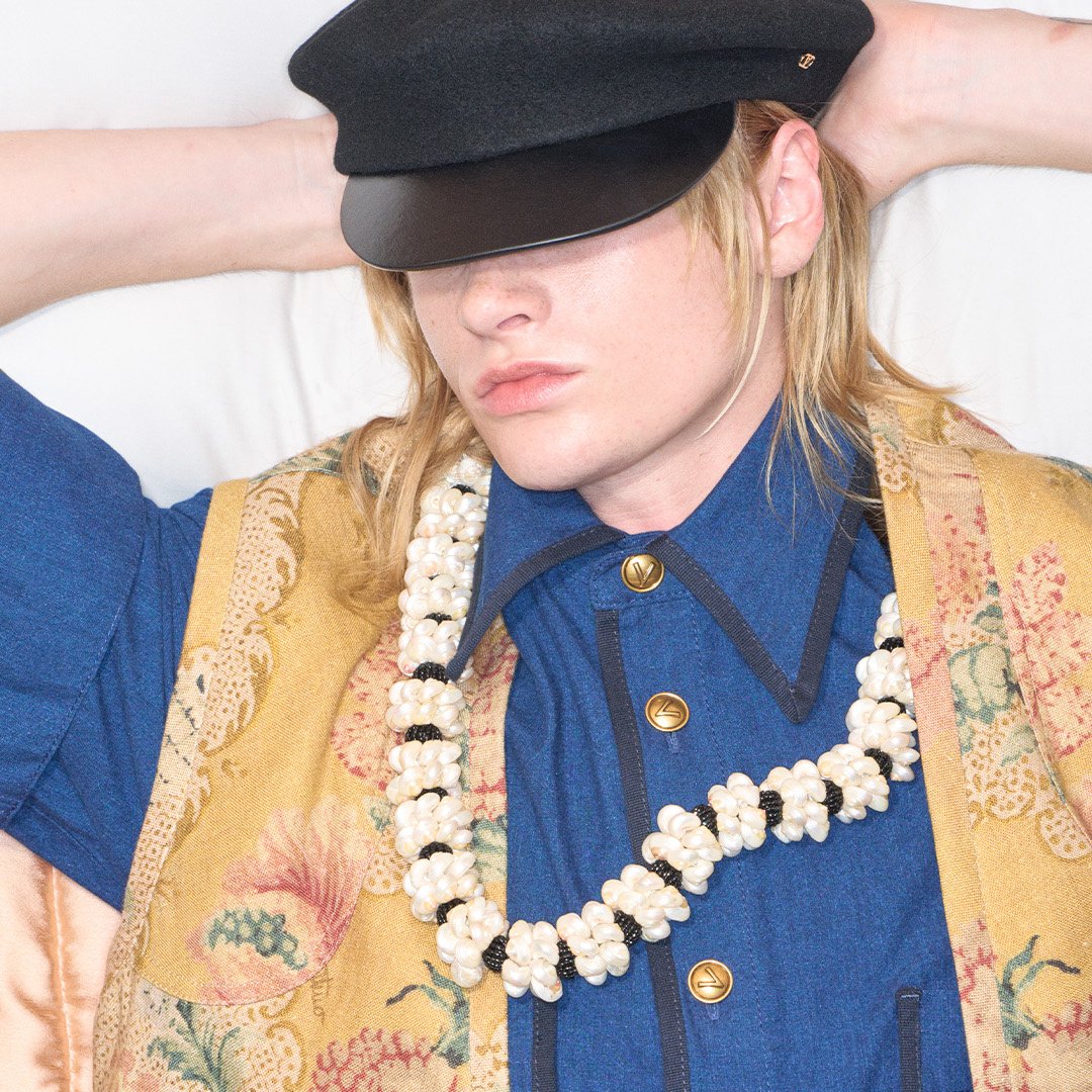 • Chez Valentino Denim Bucket Hat With Embroidery
