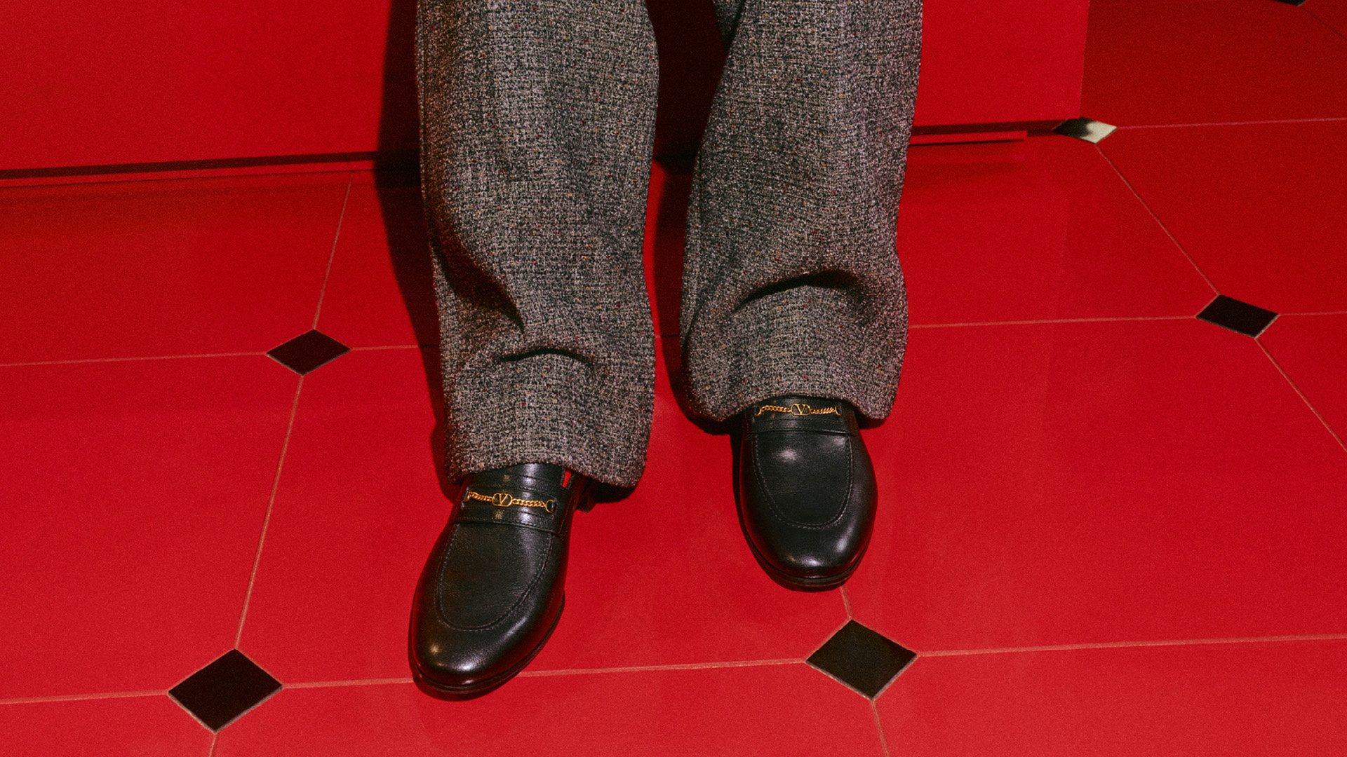 • Valentino Garavani Babouche Haircalf Loafers With Fauve Eclat Print