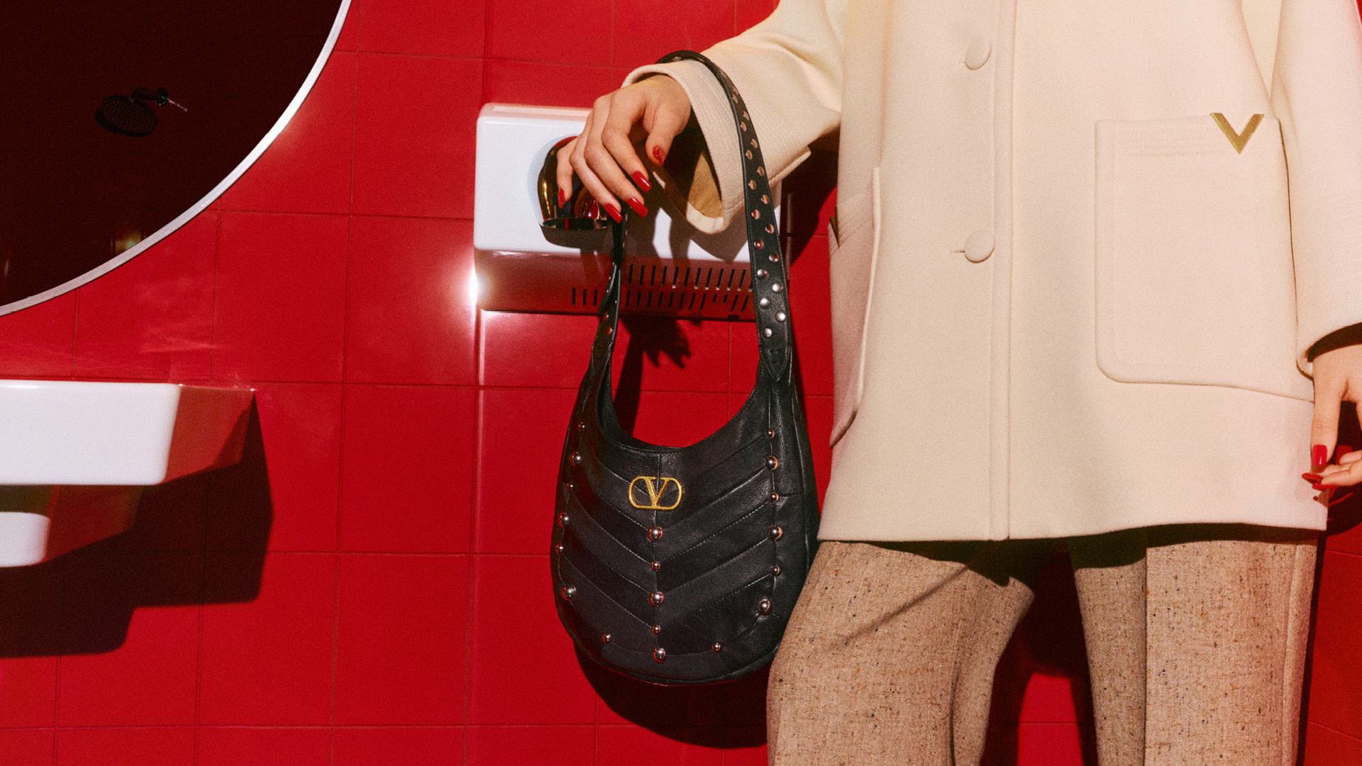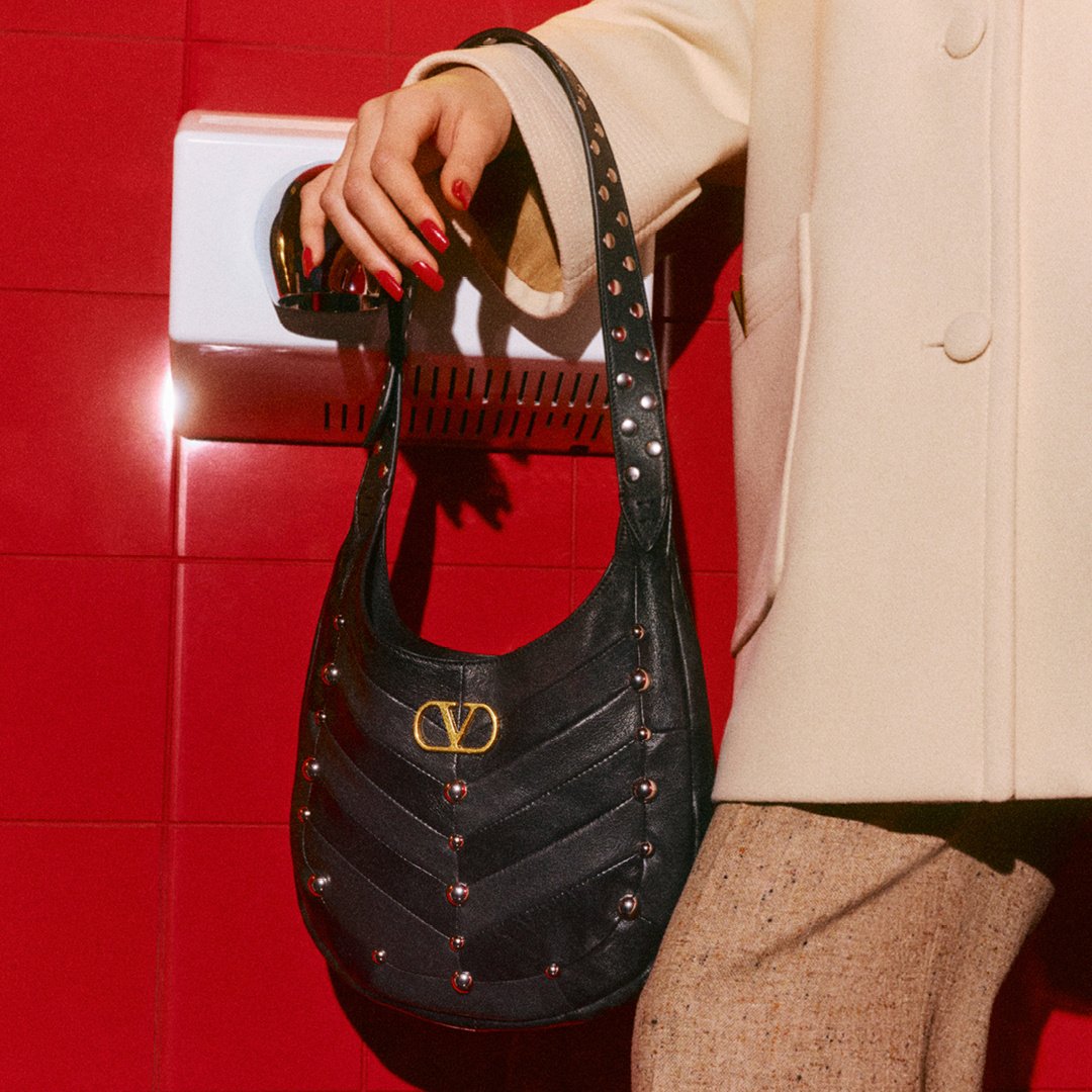 • Valentino Garavani Hoboho Small Nappa Leather Hobo Bag With Chevron Pattern And Studs