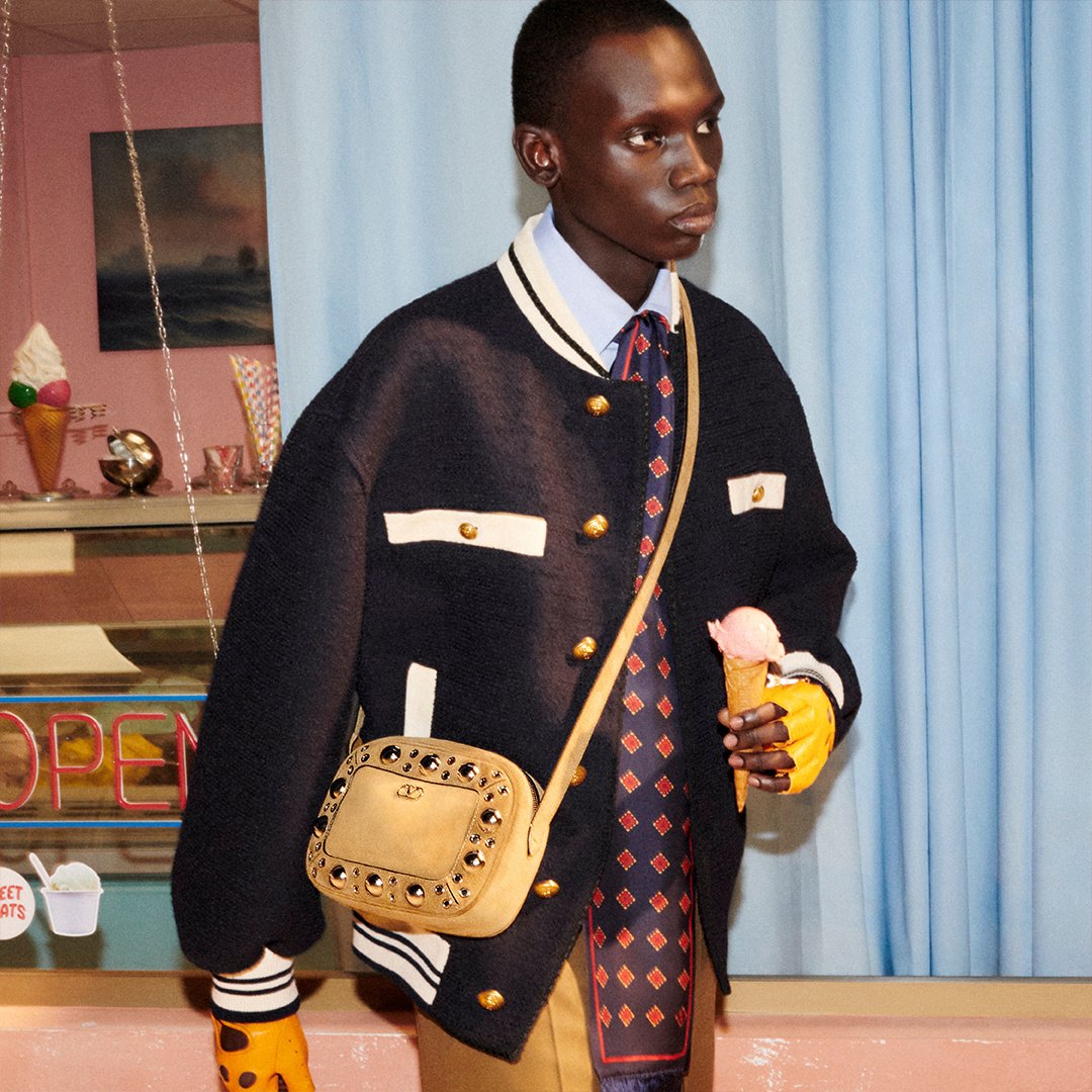 • Valentino Garavani DeVain Small Shoulder Bag With Rhombelle Embroidery.